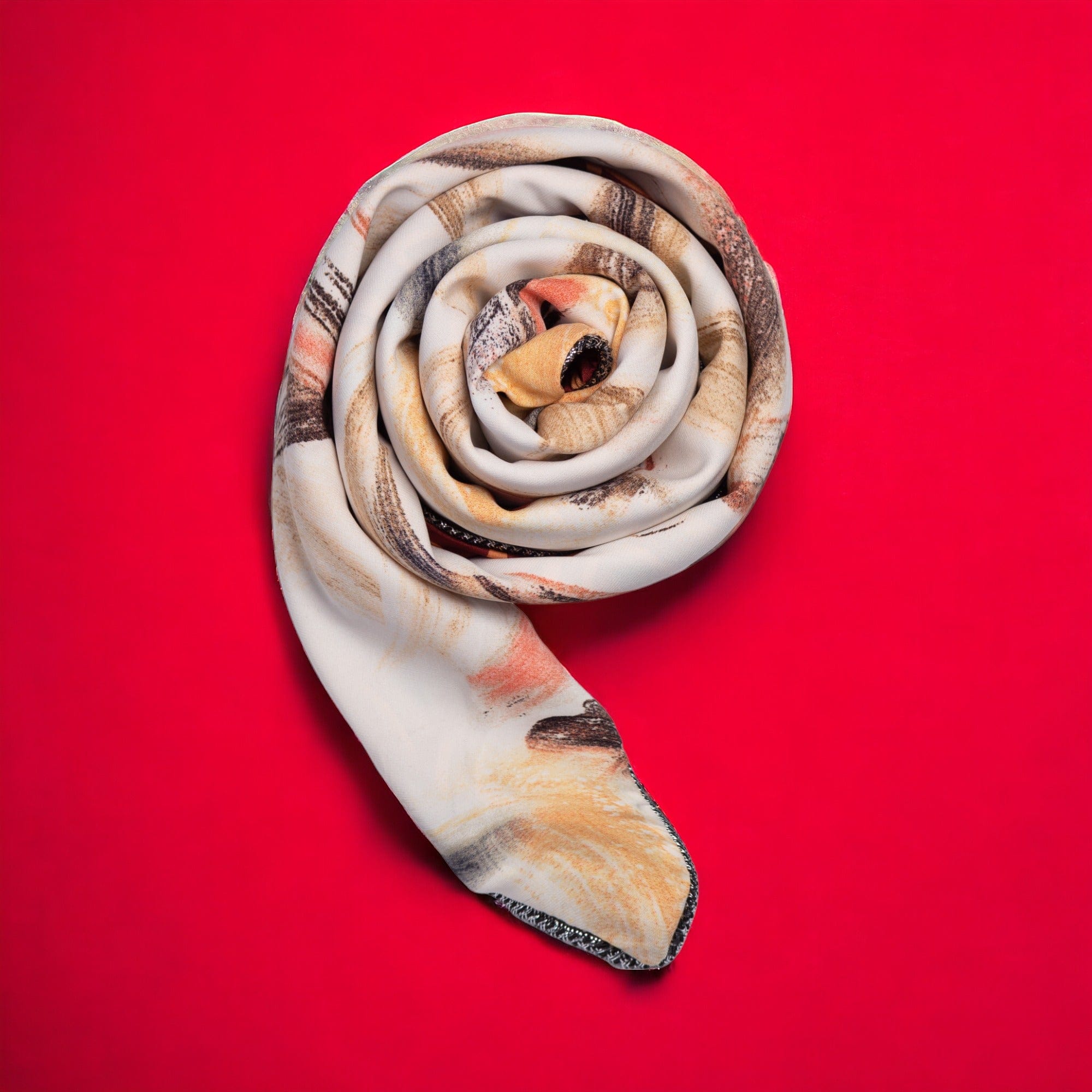 Découvrez l'essence de la délicatesse avec notre sublime foulard pour femme. Ses teintes douces de rose, agrémentées de tâches élégantes de marron et d'orange, évoquent la tendresse d'un coucher de soleil, créant un accessoire aussi romantique que polyvalent. Les délicates nuances de rose se mêlent harmonieusement aux accents chauds des tâches de marron et d'orange, formant un motif enchanteur qui ajoute une touche féminine à chaque tenue.