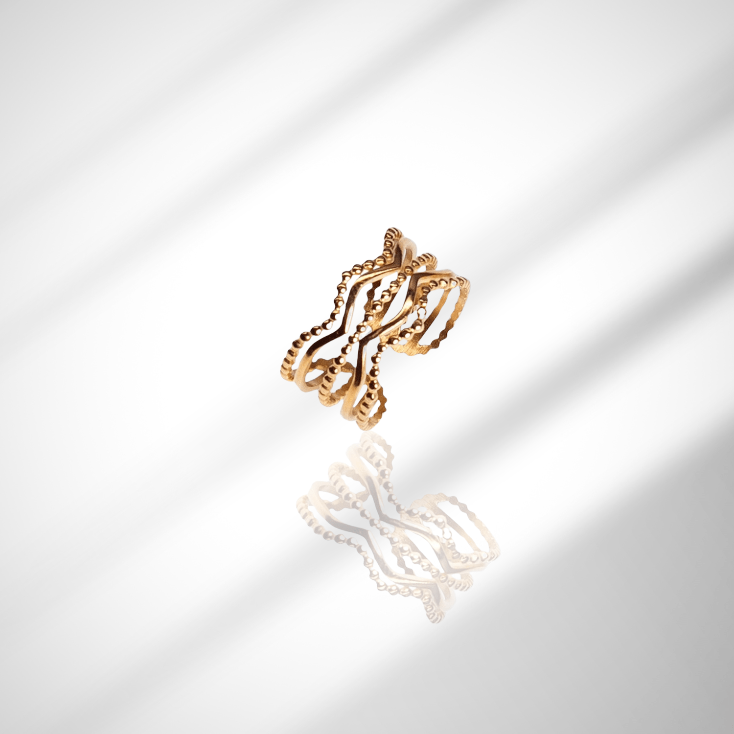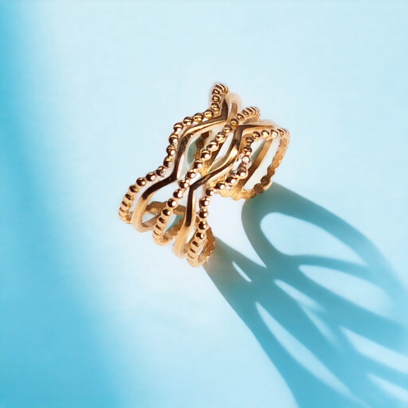 Offrez-vous la bague Agua, un bijou en acier inoxydable de haute qualité, conçu pour les femmes à la recherche d'un accessoire élégant et raffiné. Ce modèle unique se distingue par ses vagues d'or délicates, apportant une touche de glamour subtil et un design intemporel. Idéale pour un look moderne et sophistiqué, cette bague s’adapte parfaitement à votre doigt, garantissant un confort optimal au quotidien.