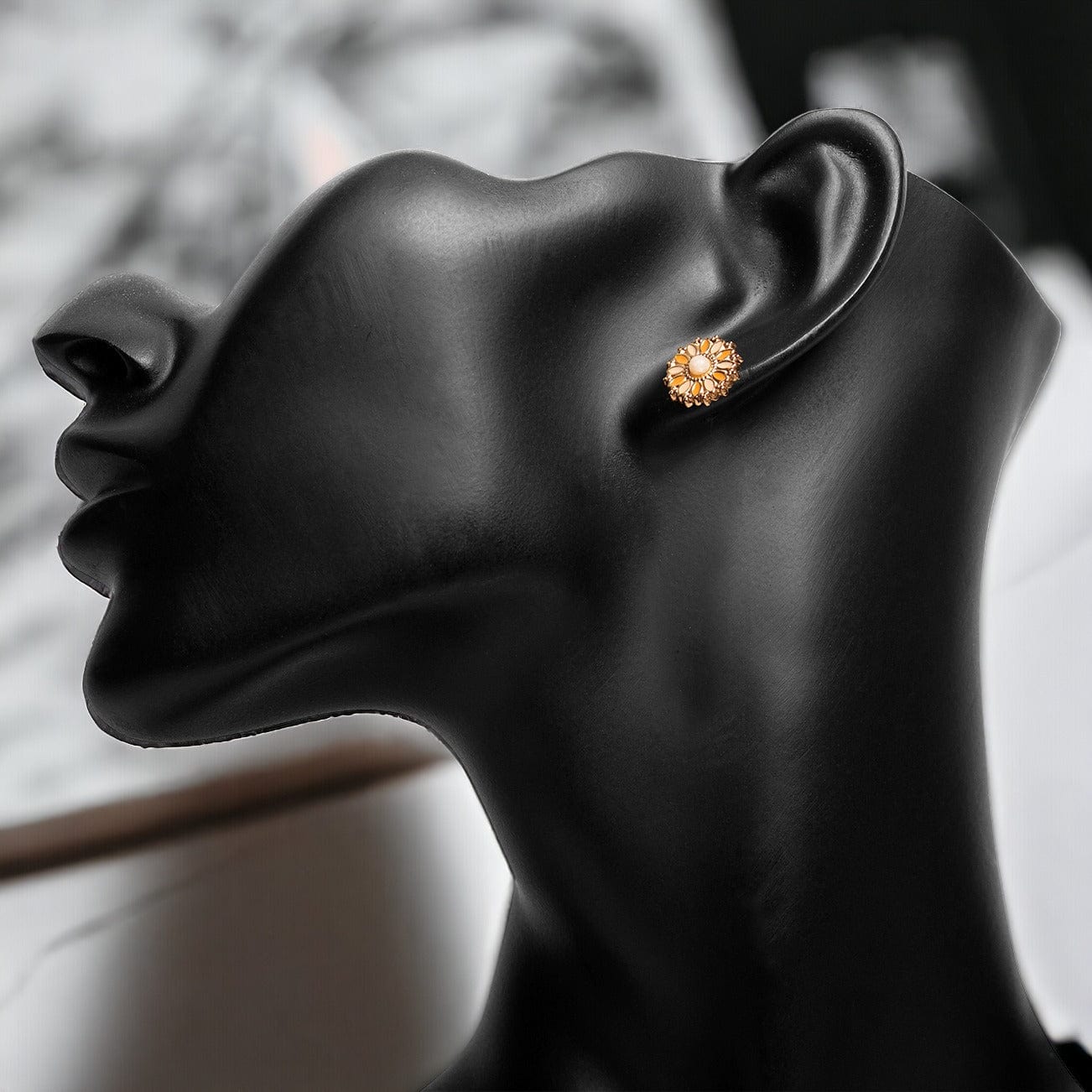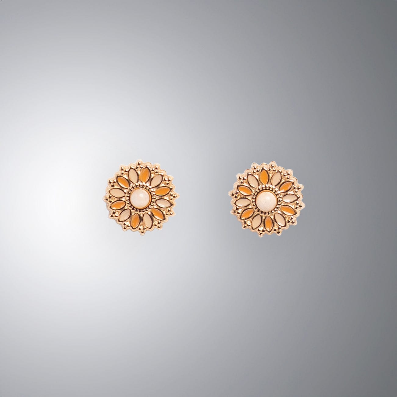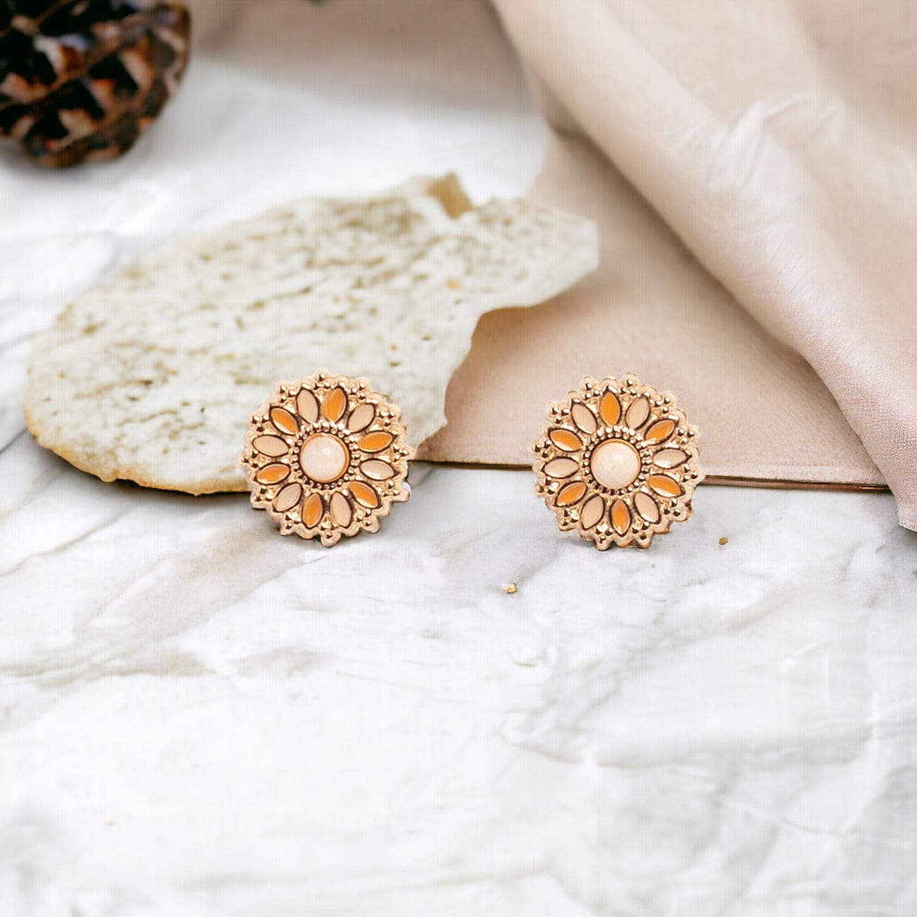 Ces bijoux exquis capturent l'éphémère beauté de l'éclosion florale, arborant un design délicat en forme de fleur. La subtile fusion des teintes orange et beige crée une harmonie chaleureuse et vibrante, adaptée à toutes les occasions.