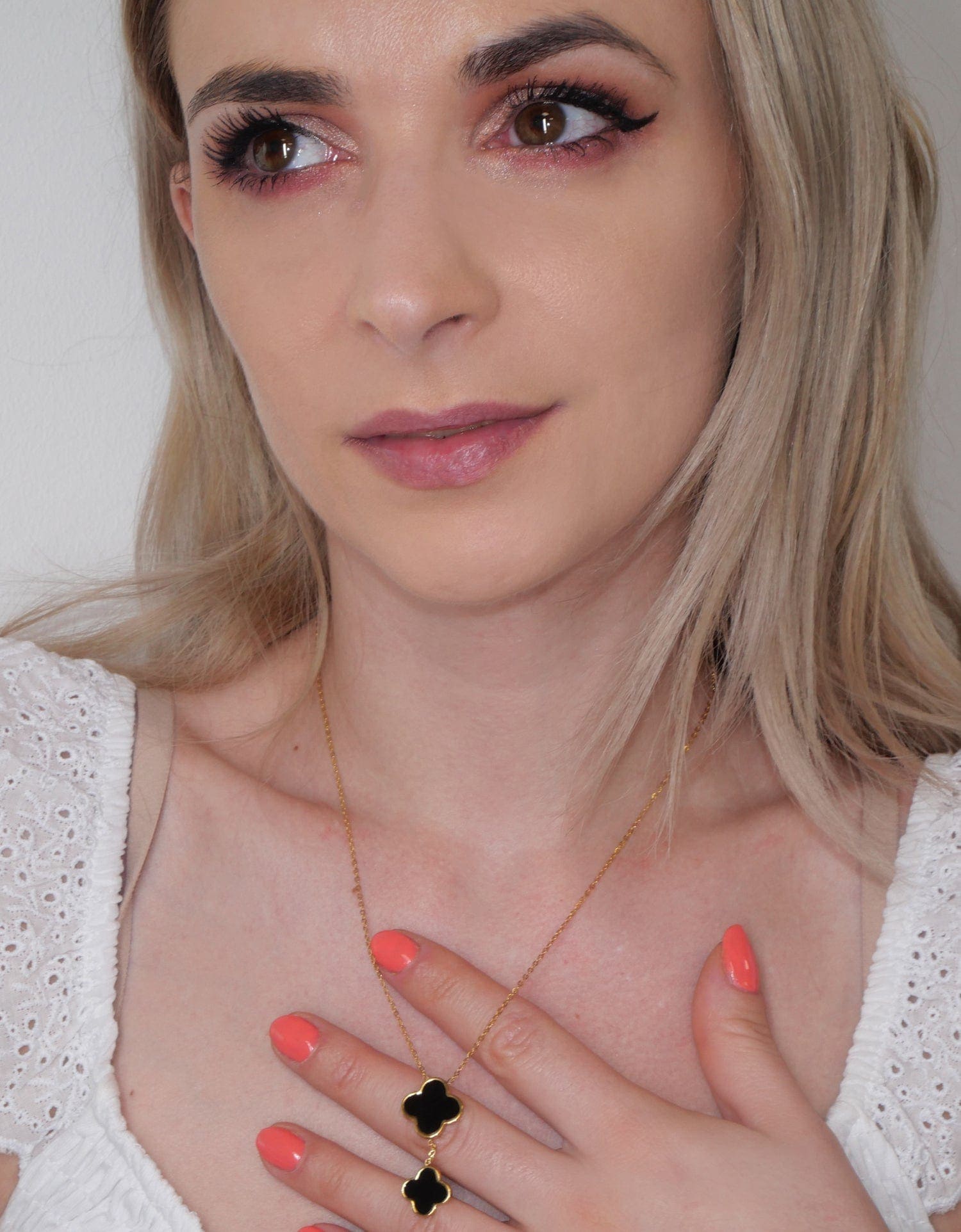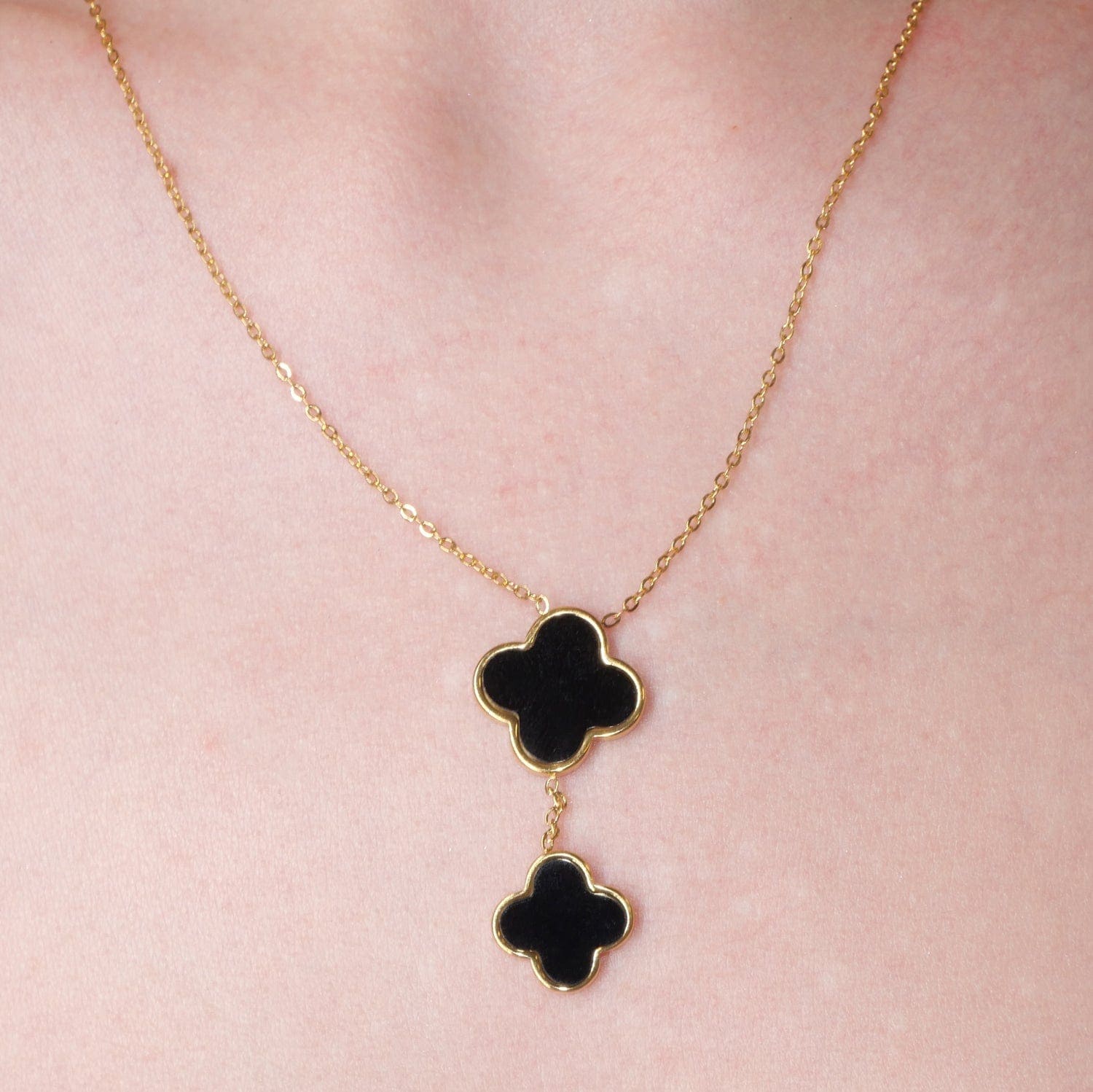 Plongez dans l'élégance intemporelle avec le collier Laura. Ce bijou exquis, orné de trèfles délicatement suspendus, incarne la sophistication et la chance. Fabriqué avec soin en acier inoxydable de haute qualité et doté d'une finition élégante, ce collier ajoute une touche de mystère et d'élégance à votre tenue. Que ce soit pour une soirée spéciale ou une journée décontractée, le collier Laura est le compagnon parfait pour exprimer votre style unique et votre confiance en vous. Laissez-vous séduire par sa beauté captivante et laissez les trèfles noirs porter bonheur à chaque instant de votre vie.