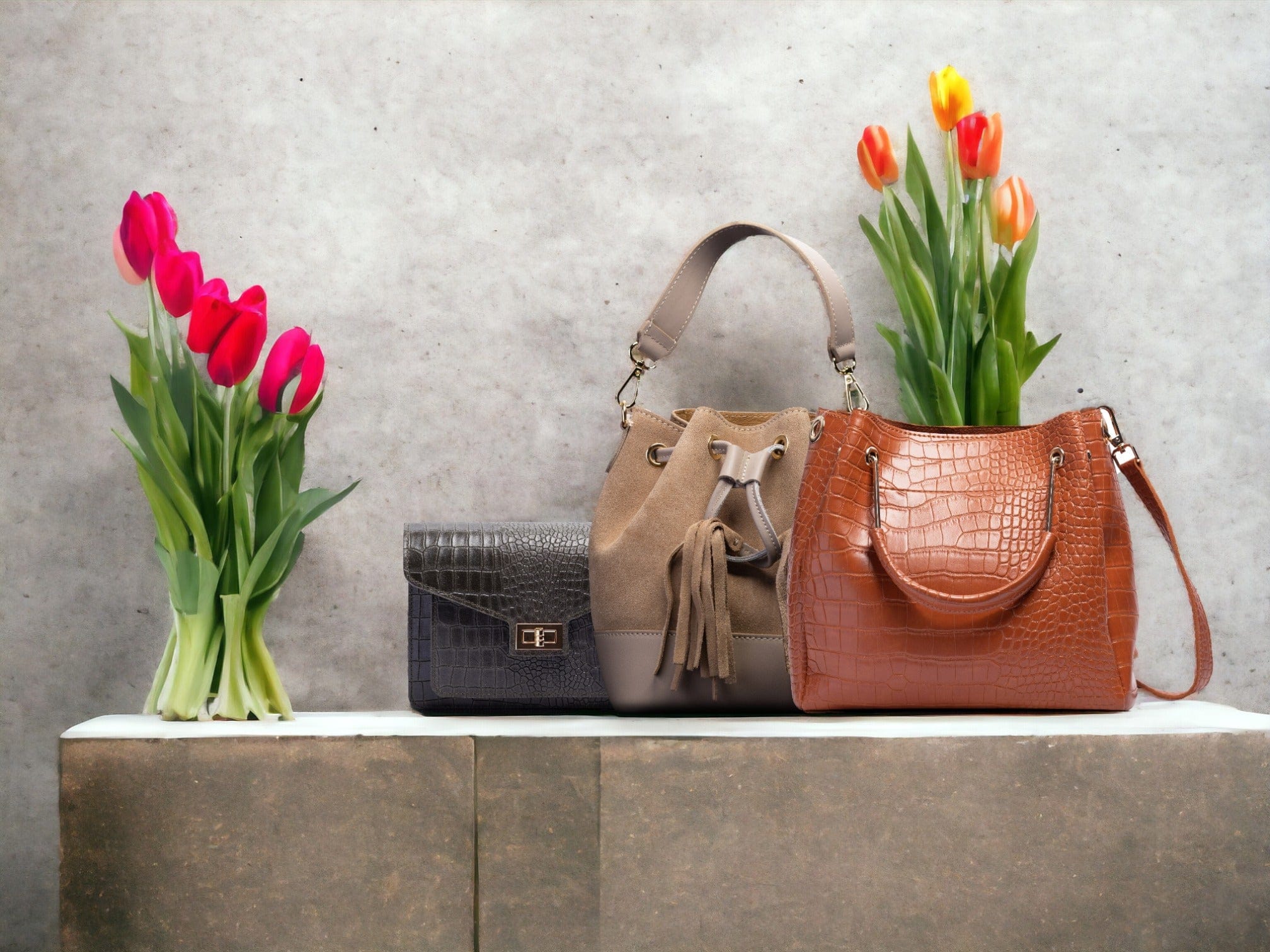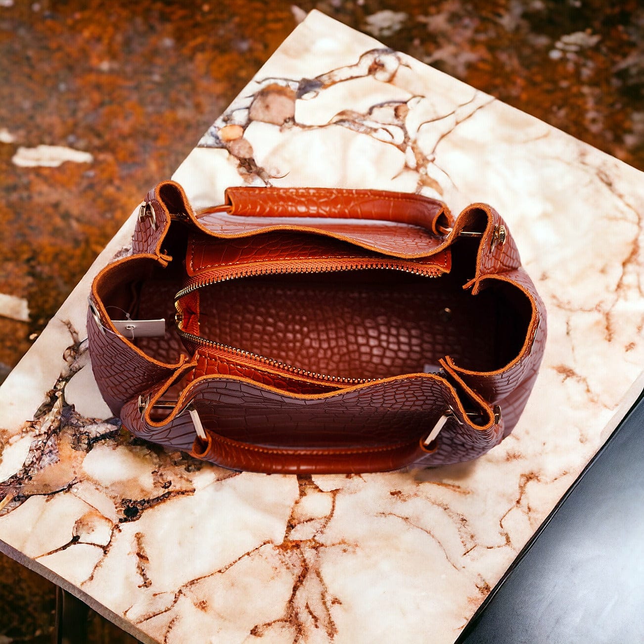 Le sac élégant par excellence : Elsa. Des courbes bien définies, un cuir façon crocodile pour habiller votre sac et le rendre plus chic.