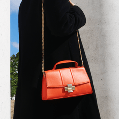 Plongez dans l'élégance vibrante avec notre sac "Ophélia". Ce sac exquis, d'un orange éclatant, est l'accessoire parfait pour illuminer vos soirées et vos sorties avec style. Sa chaîne dorée et son fermoir délicatement ouvragé ajoutent une touche de sophistication et de classe à l'ensemble, faisant de ce sac un véritable joyau à porter fièrement à votre épaule. Fabriqué avec soin à partir de matériaux de haute qualité, ce sac incarne le mariage parfait entre la modernité audacieuse et le raffinement intemporel. Laissez-vous séduire par son charme envoûtant et ajoutez une touche de glamour à chacune de vos tenues avec le sac "Ophélia.