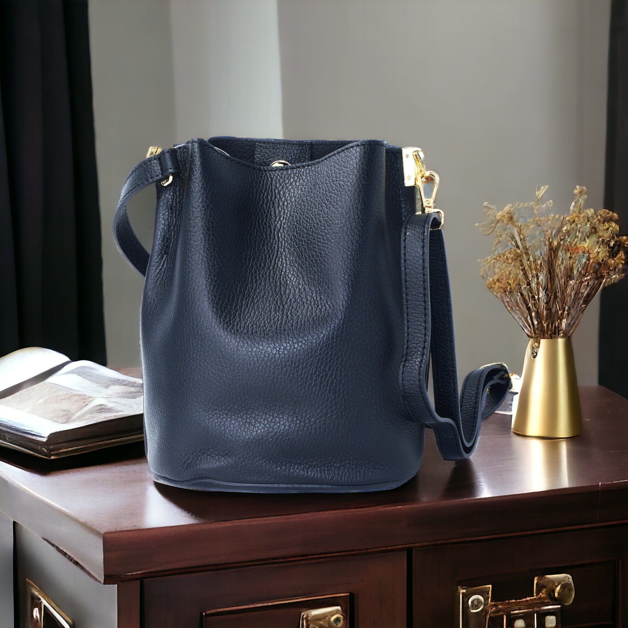 Plongez dans l'élégance intemporelle avec notre sac en seau "Céline" en cuir noir italien. Ce sac exquis incarne le raffinement et la sophistication avec son design épuré et ses lignes élégantes. Fabriqué avec soin à partir de cuir italien de première qualité, chaque détail de ce sac respire le luxe et l'artisanat exceptionnel. Sa forme en seau offre une touche de modernité, tandis que la possibilité de le porter en bandoulière ajoute une praticité indéniable à son allure chic. Assez spacieux pour accueillir vos essentiels du quotidien, mais suffisamment compact pour être porté avec grâce à chaque occasion, le sac "Céline" est un compagnon idéal pour une femme moderne et sophistiquée. Ajoutez une touche de prestige à votre garde-robe avec le sac "Céline" et laissez-vous séduire par son charme intemporel
